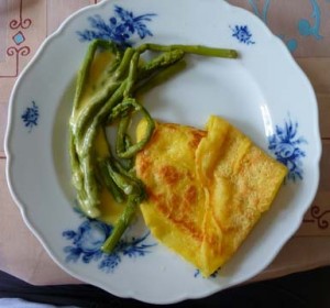 >des crepes avec d’asperge et sauce hollandaise á la Eschelbach<